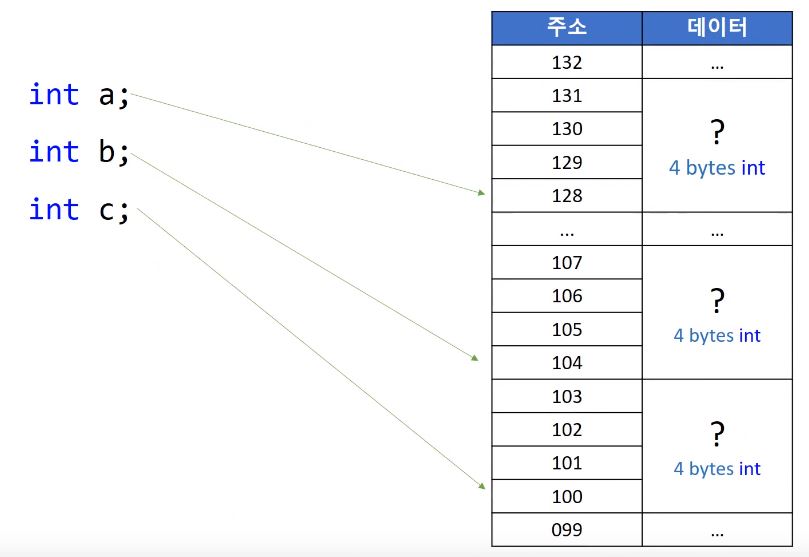 메모리주소를 가지고 있는 a와 그 메모리가 얼마나 공간을 차지할것이냐 정하는 자료형 int (4 bytes)