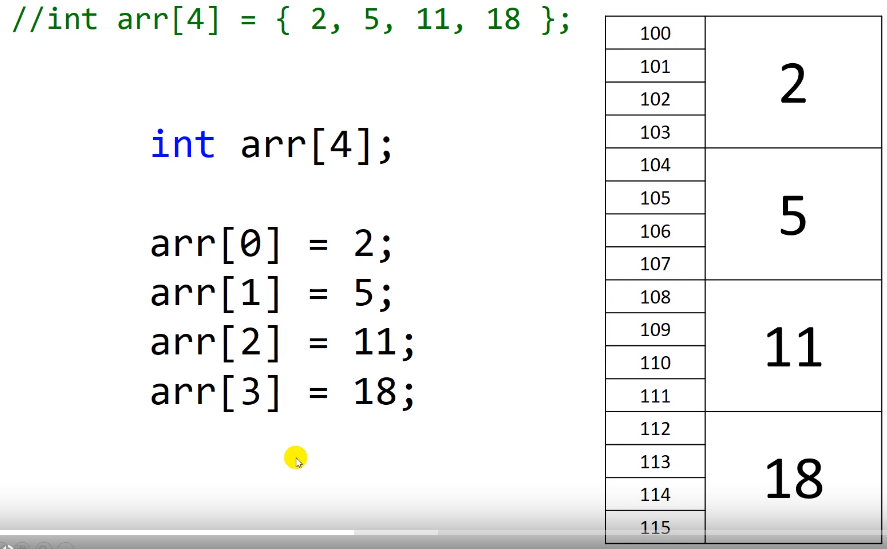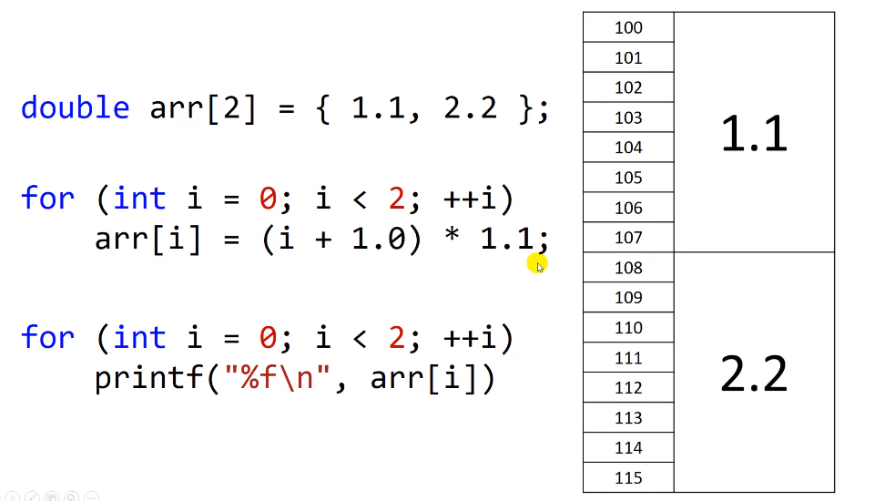 arr를 선언하면 연속된 메모리 공간을 할당받는다.