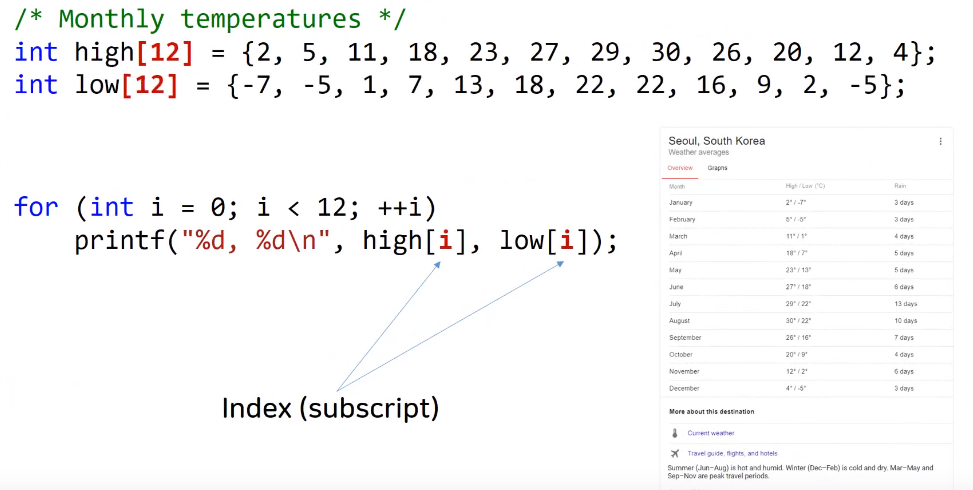 index에 1이 들어오면 첫번째 주소로부터 자료형 사이즈만큼 칸을 옮긴다(int형이니 4바이트만큼)