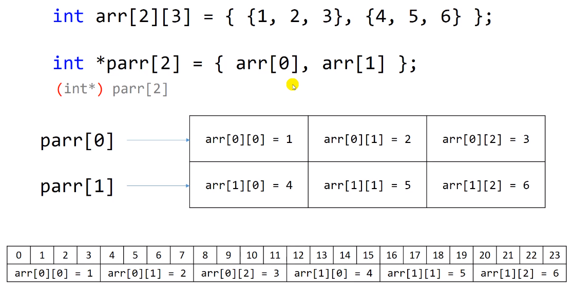 // parr 포인터의 배열의 첫번째 원소에 arr0가 들어간다.