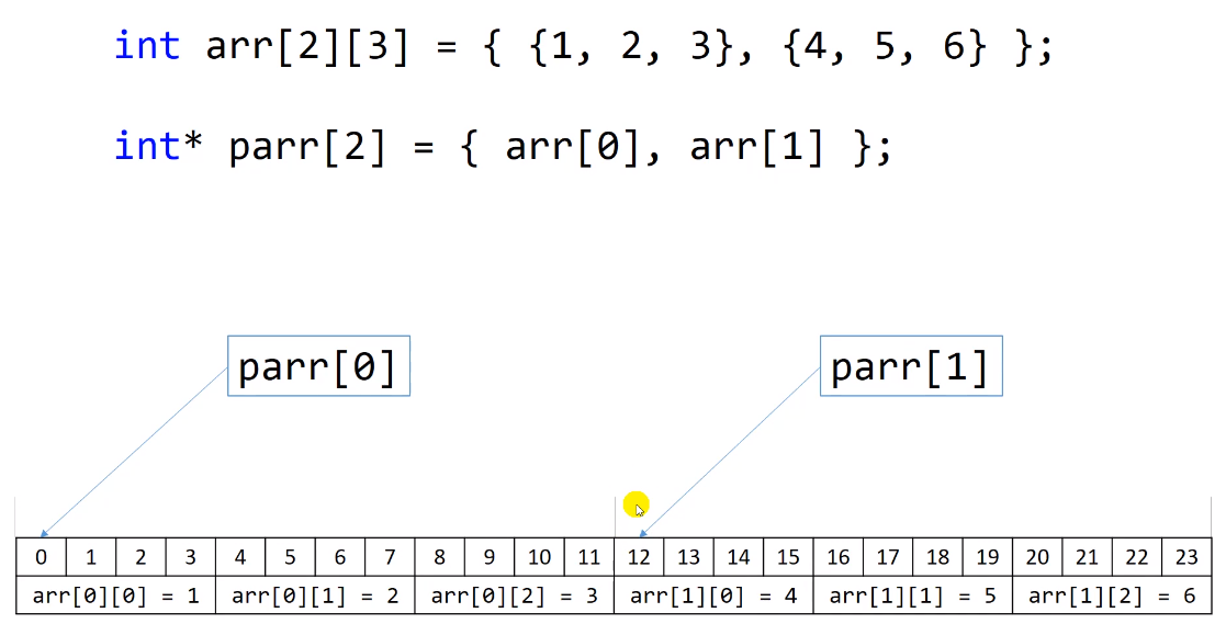 ////int* parr[2] = { arr0, arr1 }; // an array of pointers