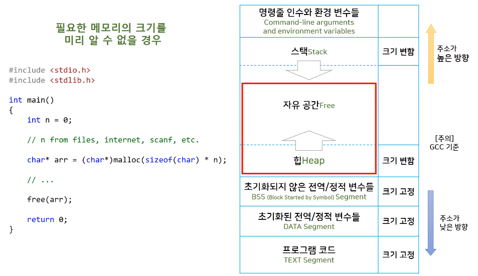 메모리가 얼마나 필요할지 알수없을때( 현대는 대부분 그렇다)