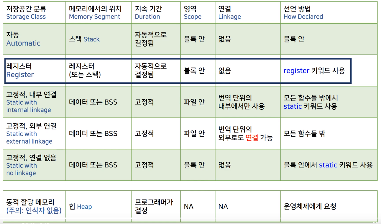 변수앞에 register를 붙이면 컴파일러에게 가급적이면 register로 등록해주세요 라고 요청하는것.