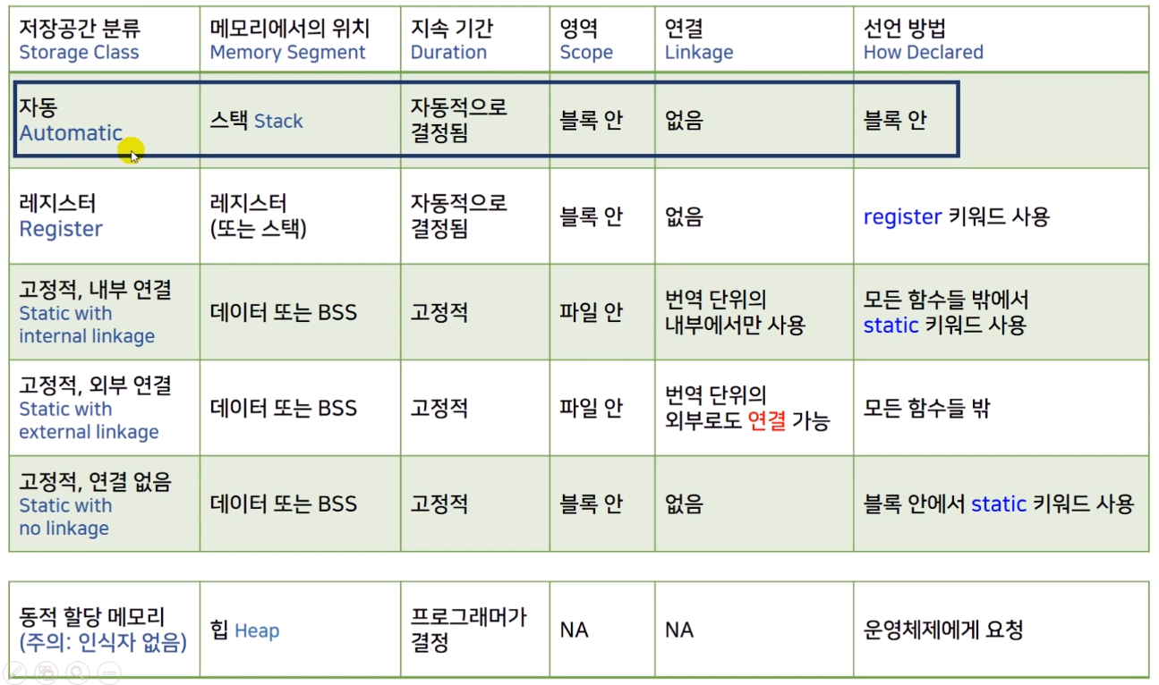 우리가 지금까지 써온 지역변수가 자동.(지속기간이 자동적으로 결정되어서 자동)
