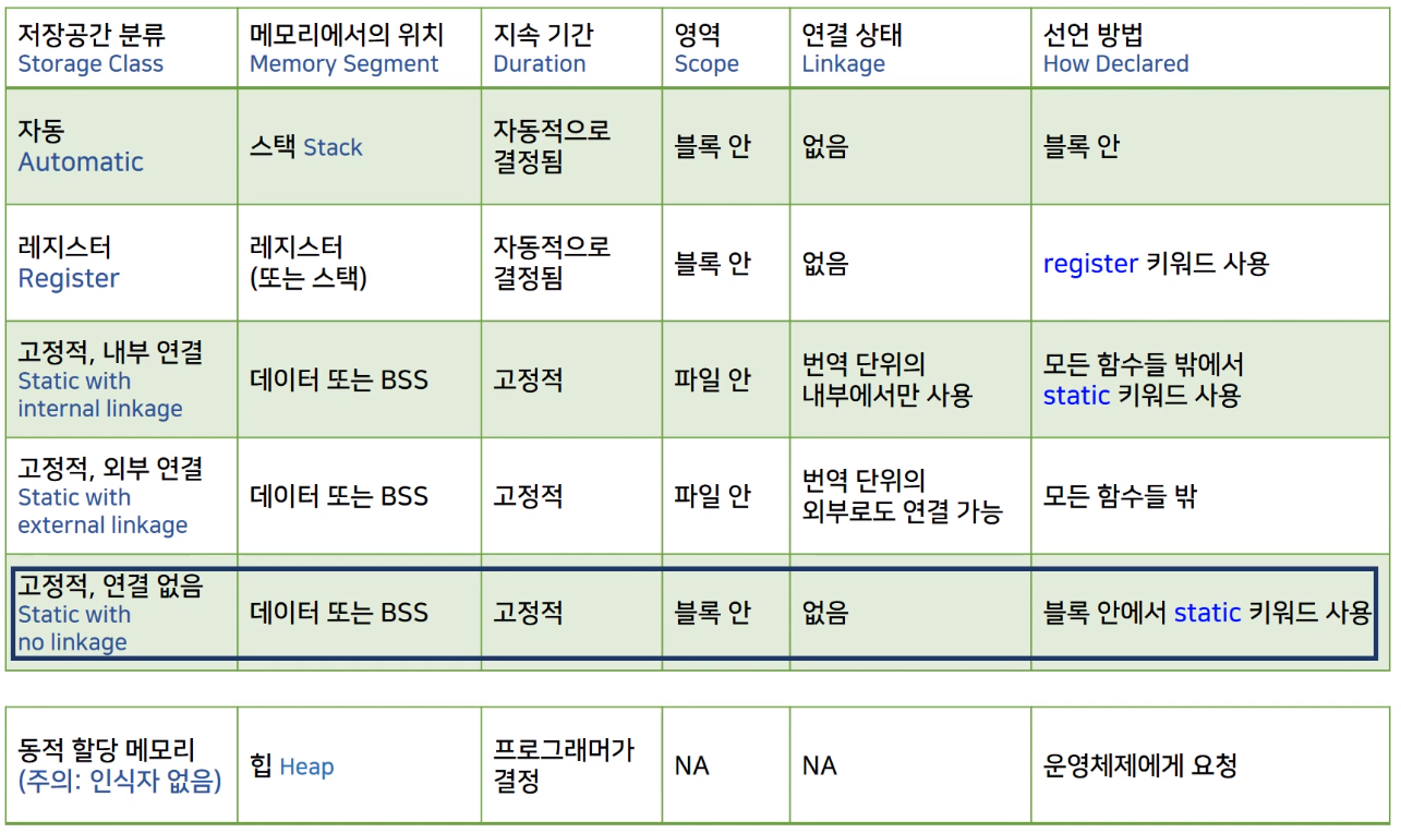 Static with no linkage는 블록안에서만 사용할수 있다. (블록안에서만 볼수있는것)