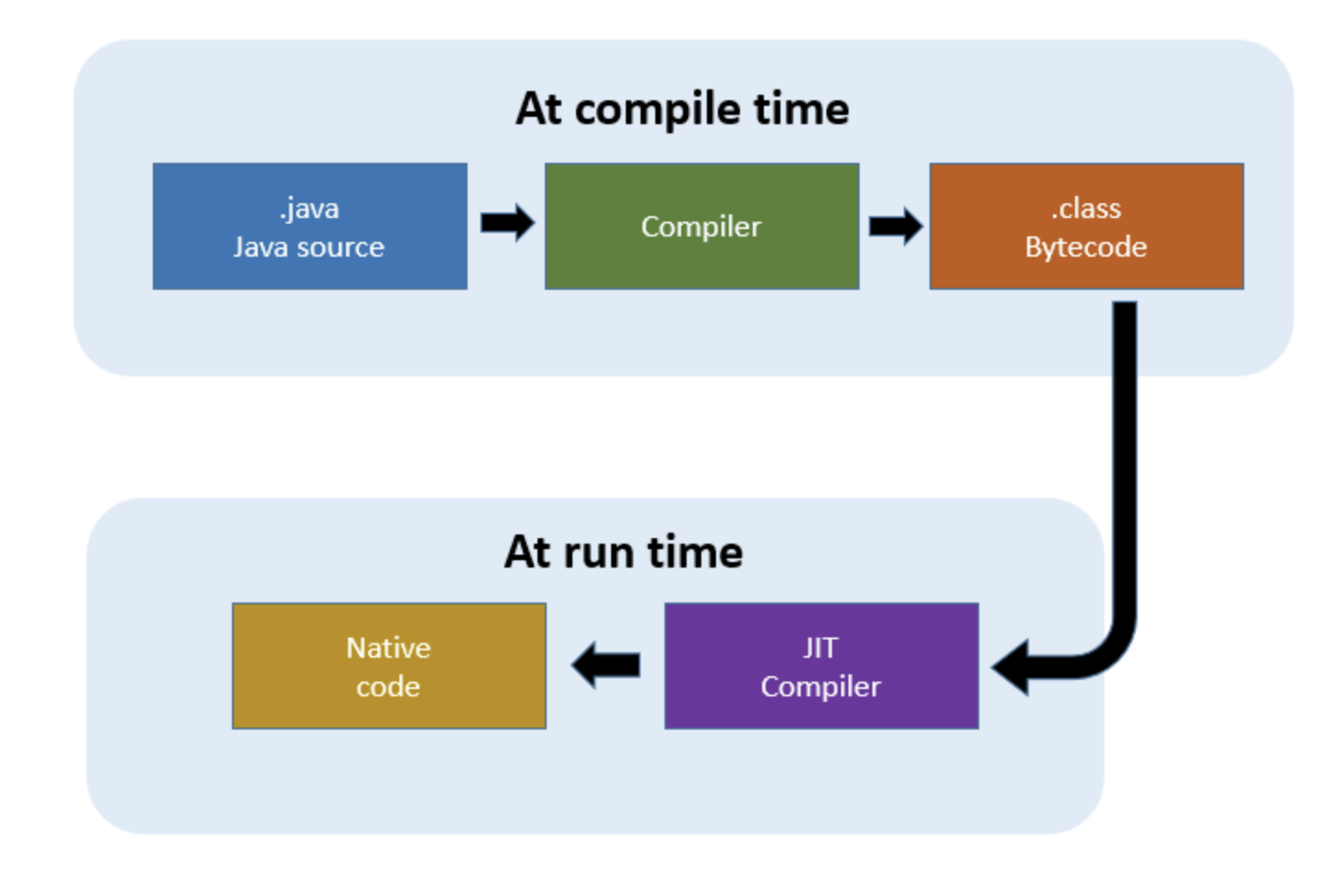 자바 가상 머신으로 자바 바이트 코드(.class 파일)를 OS에 특화된 코드로