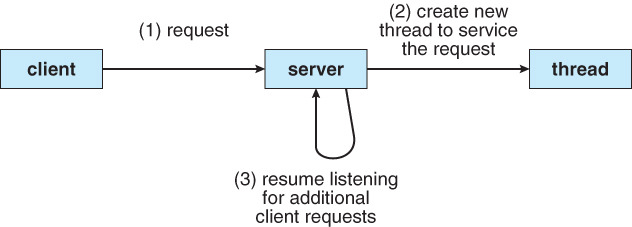 - 워드 프로세서에는 그래픽을 표시하는 스레드, 사용자의 키 입력에 응답하는 또 다른 스레드 및 백그라운드에서 맞춤법 및 문법 검사를 검사를 수행하는 세 번째 스레드가 있을 수 있다.