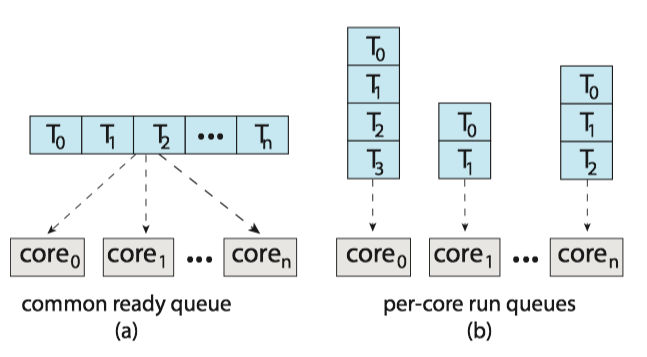 - 모든 스레드가 공통 준비 큐에 있을 수 있다.