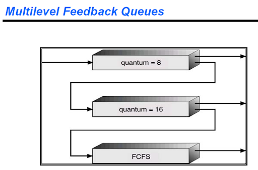 다단계 피드백 큐 스케줄링 알고리즘에서는 프로세스가 큐들 사이를 이동하는 것을 허용한다.