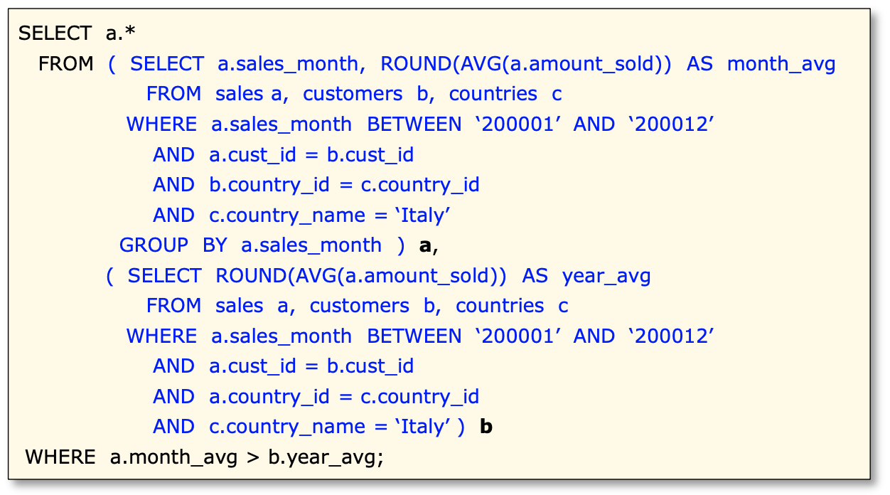 FROM절에 사용하는 서브쿼리를 뷰로 가정한다는 의미임.