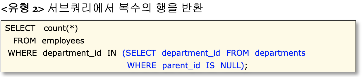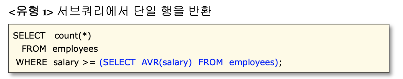연관성있는서브쿼리 형태에 따라