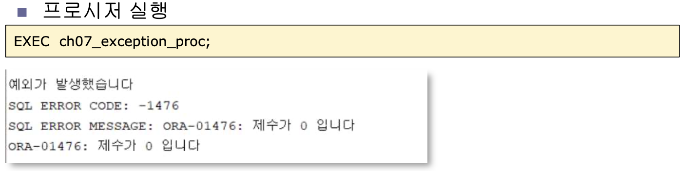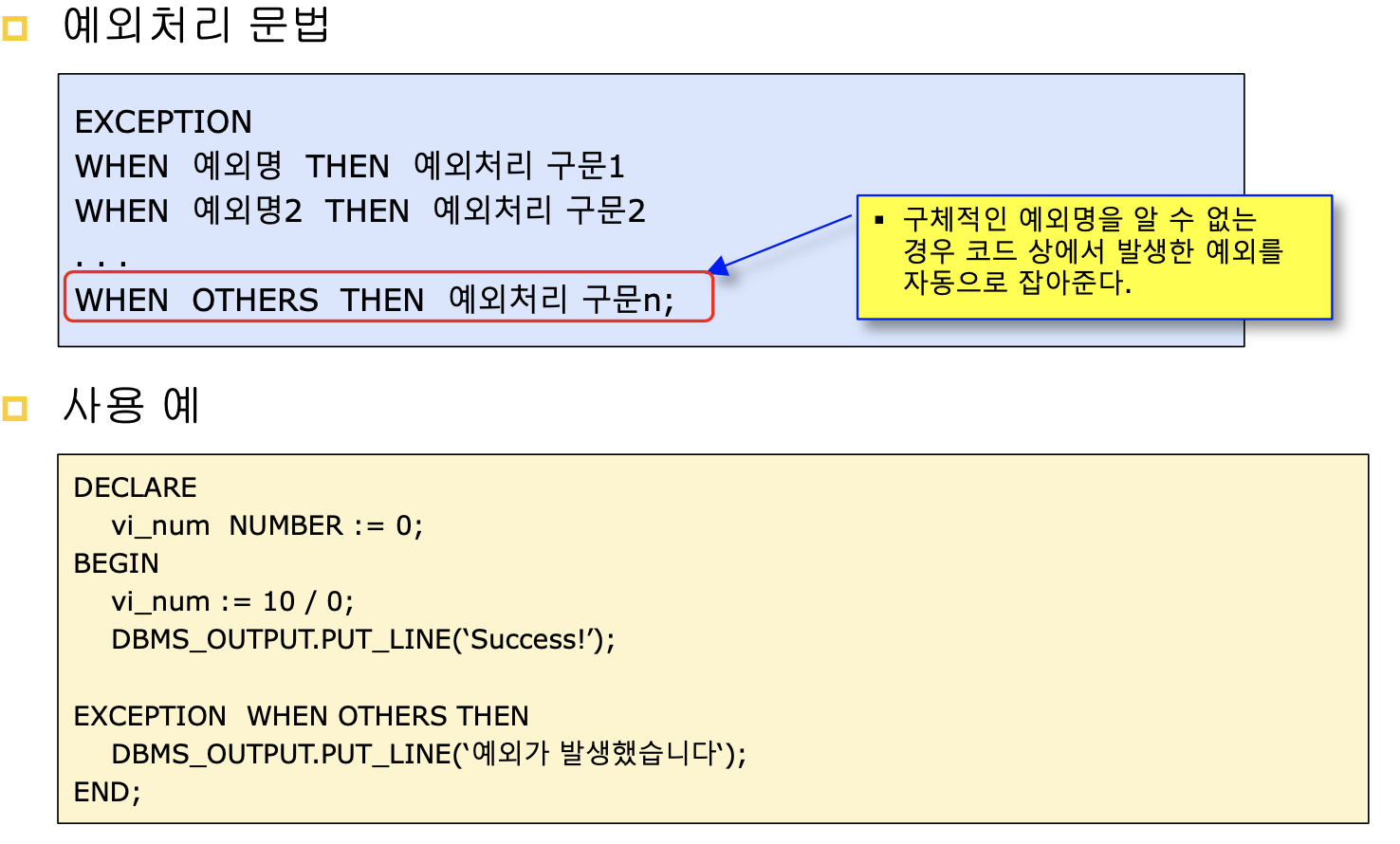 시스템 예외는 오라클 내부에 미리 정의된 예외