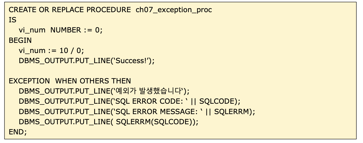 오라클에서는 발생한 예외 정보를 참조하기 위한 수단으로 SQLCODE와