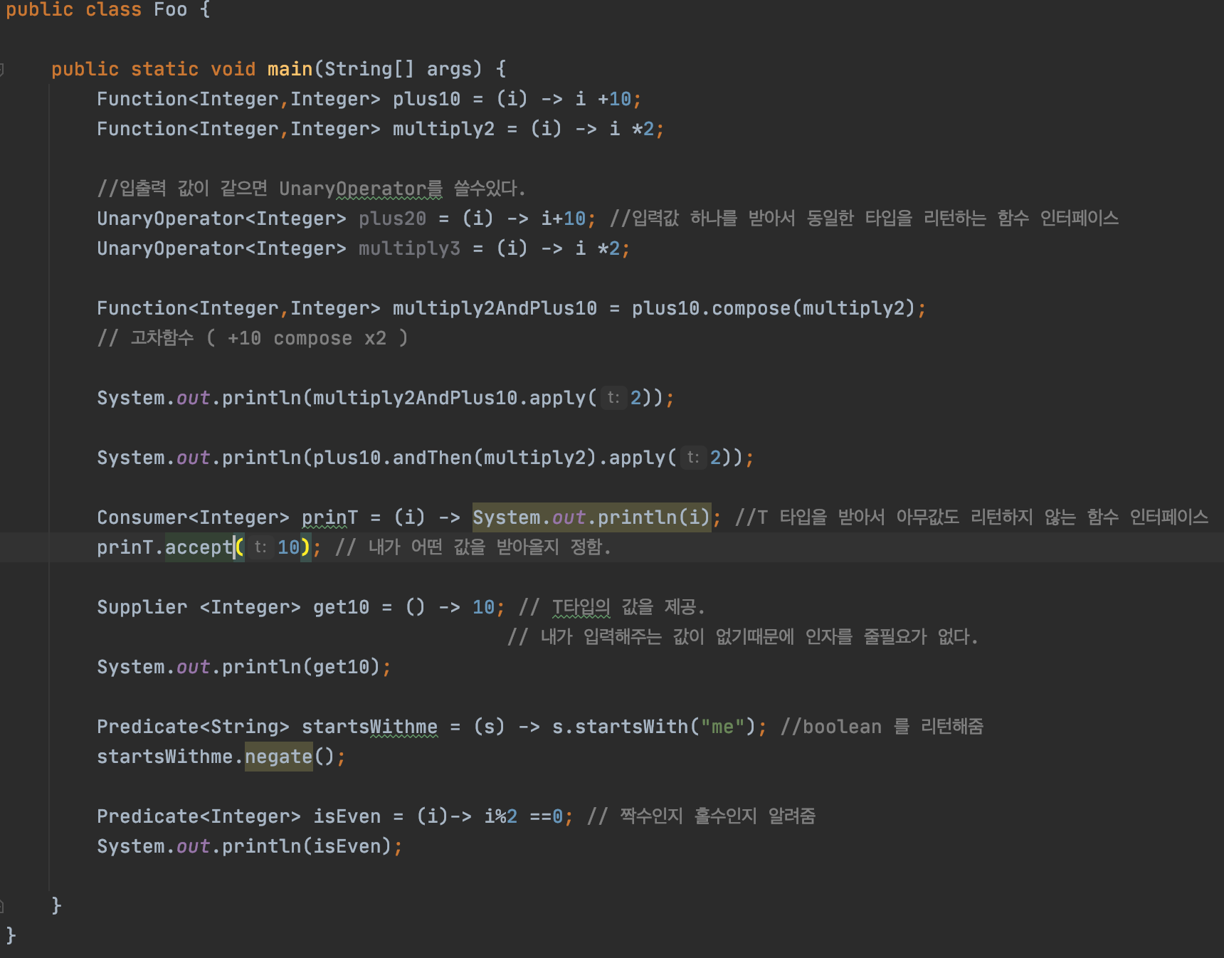 ● @FuncationInterface 애노테이션을 가지고 있는 인터페이스