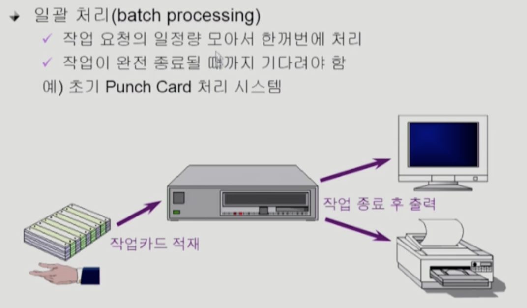 - 예) UNIX, MS Windows 등에서는 한 명령의 수행이 끝나기 전에 다른 명령이나 프로그램을 수행할 수 있음