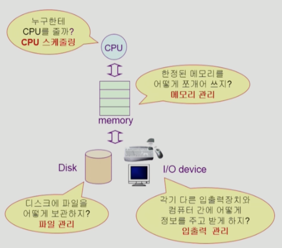 프로세서, 기억장치, 입출력 장치등의 효율적 관리 (하드웨어 자원들)