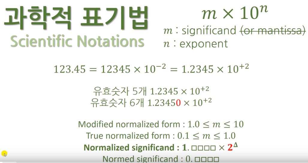우리가 주목해야될걸 Normarlized significnad 이다. 부동소수점수를 표현하는 방식이기 때문에