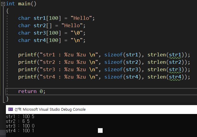 str3에서 보다싶이 " \0" 으로 스페이스 한칸을 가지고 있다.